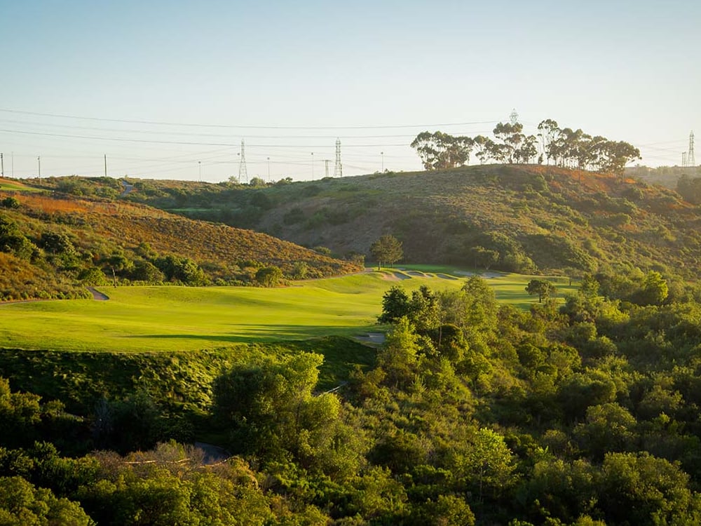 Walking is allowed, but, given the distances between holes, do yourself a favor and take an electric cart. The canyon is bounded on the south side by a huge retaining wall that supports the runway of Carlsbad Airport—a favorite destination for pro golfers coming in to test clubs at Callaway headquarters.
